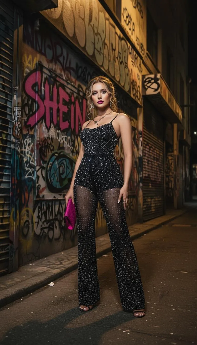 Rhinestone Mesh Jumpsuit